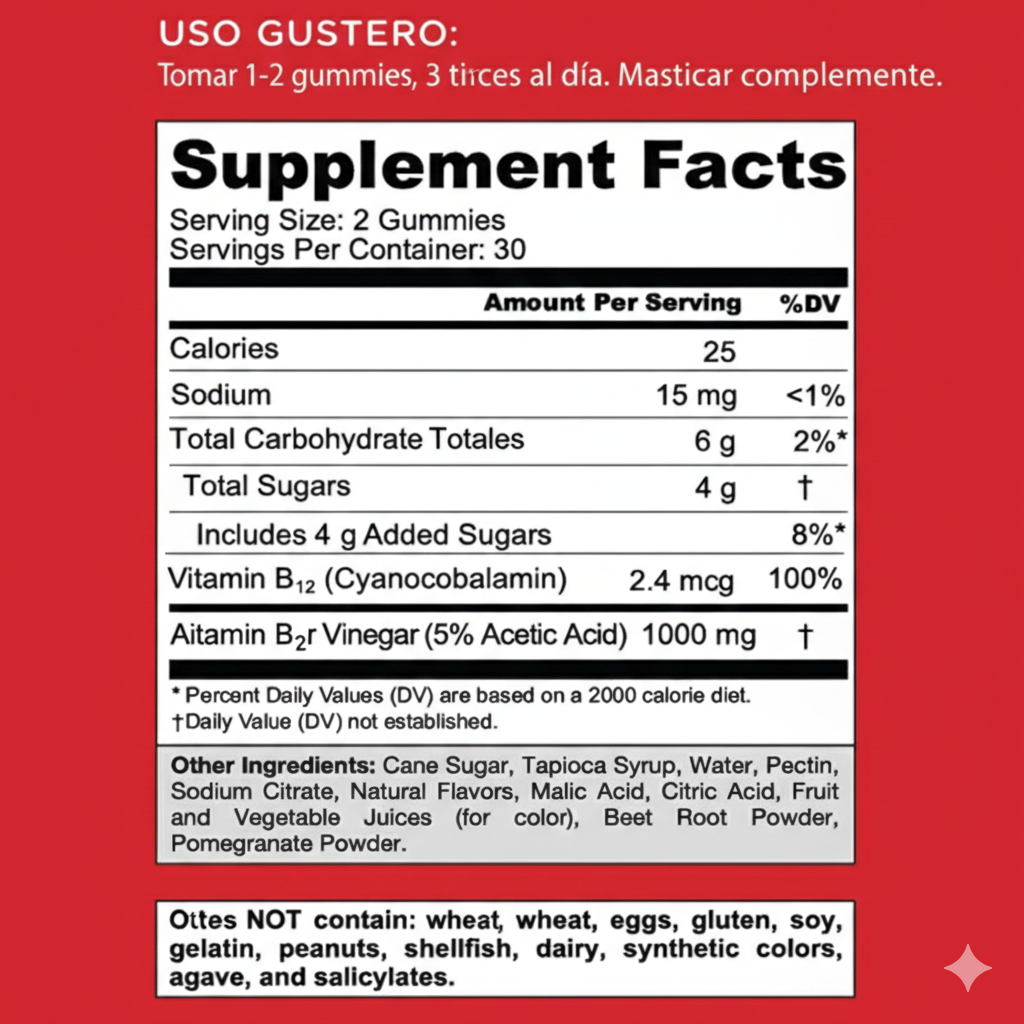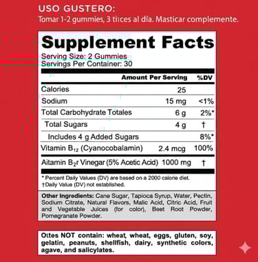 “Con Vitamina B12 para apoyar el metabolismo energético.”