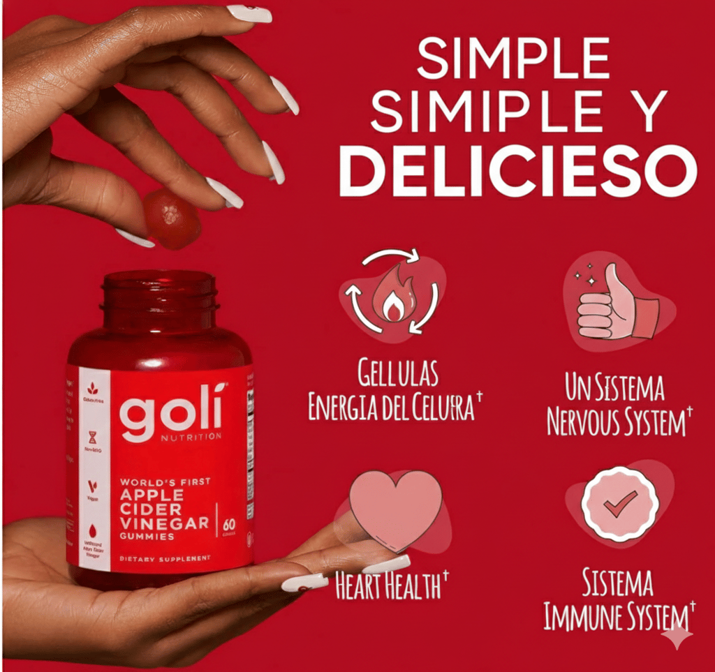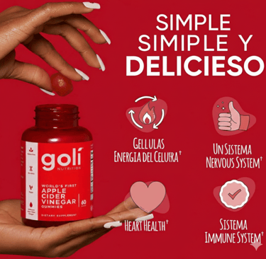 Las Gomitas de Vinagre de Sidra de Manzana (ACV) de Goli® están elaboradas con una mezcla única de ingredientes que apoyan muchos beneficios increíbles. Las Gomitas de ACV de Goli® han sido formuladas específicamente con Vitamina B12 para ayudar a apoyar el metabolismo energético, una función inmunológica saludable, la salud del corazón, un metabolismo saludable de los nutrientes, un sistema nervioso saludable, la salud y el bienestar general, y para brindar apoyo antioxidante.