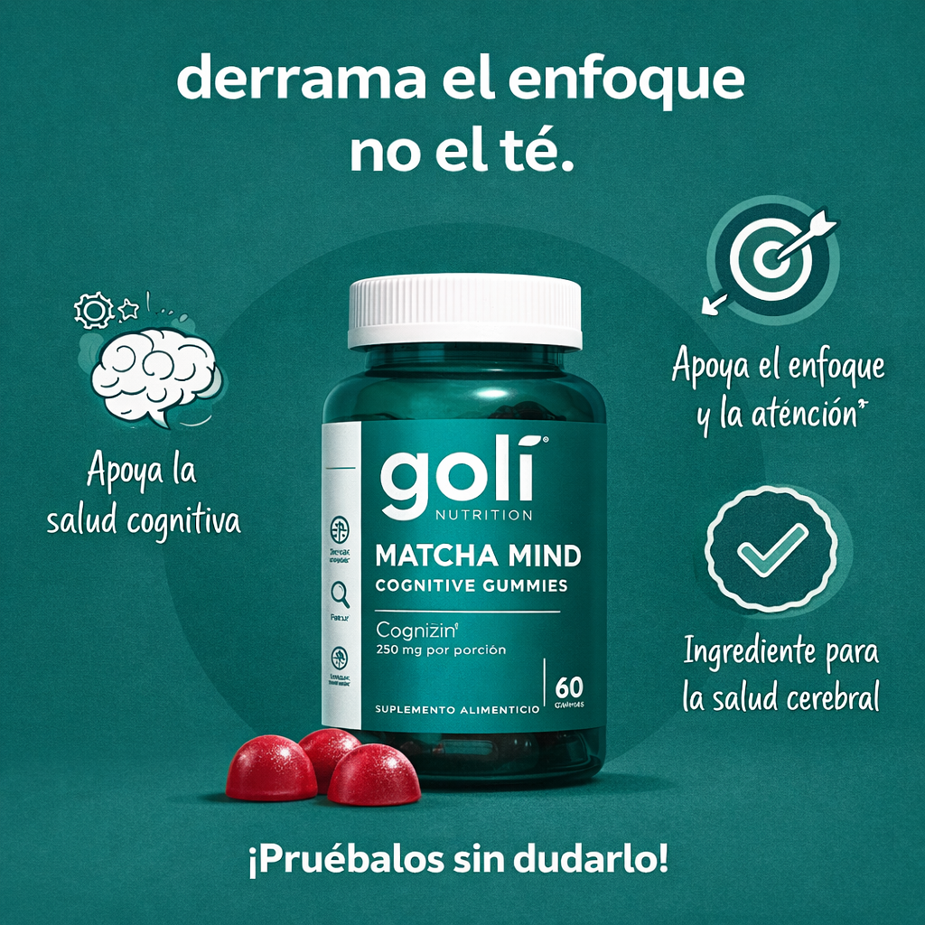 Las gomitas Goli Matcha Mind son una adición perfecta a tu rutina diaria con Cognizin para ayudar con el enfoque, la salud cognitiva y la atención